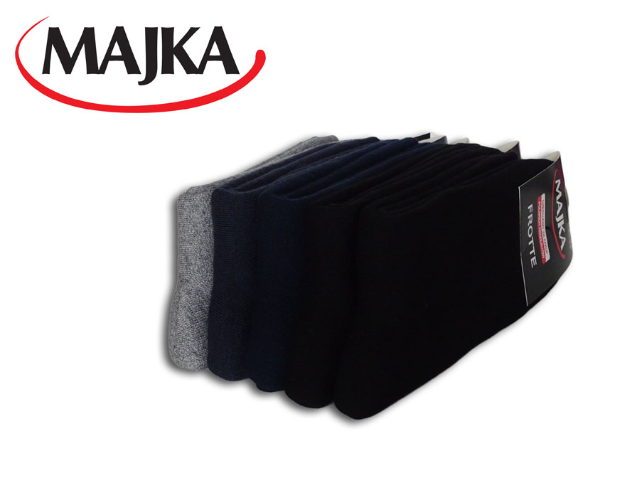 Skarpety frotte produkowane są z wysokogatunkowej 100% bawełny czesanej. Dodatkowo wzmocnione w pięcie oraz palcach. Są bardzo ciepłe, wygodne, a zarazem trwałe. Idealnie nadają się na chłodniejsze dni. Świetnie dopasowują się do stopy. W swoim składzie posiadają włókno, które doskonale odprowadza pot, nie powoduje alergii i grzybic. Ważną zaletą jest również fakt, że palce łączone są bezszwowo co zdecydowanie zwiększa komfort użytkowania.