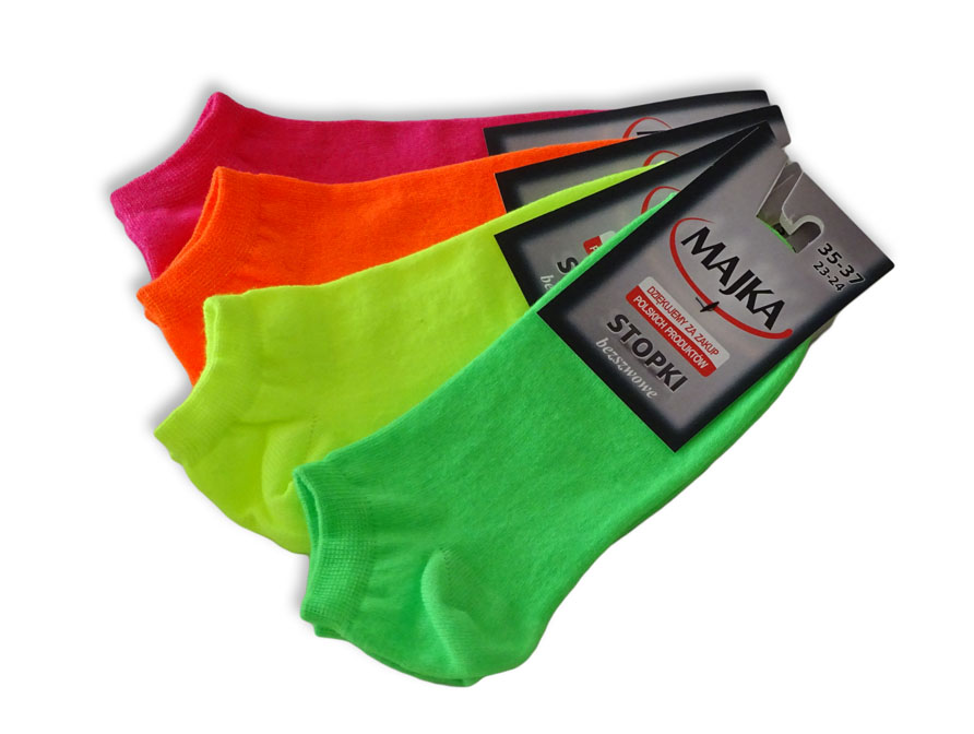 Neonowe stopki damskie powstały z myślą o osobach, które chcą się wyróżnić. Wykonane są z wysokiej jakości bawełny czesanej. W swoim składzie posiadają również włókno, które doskonale odprowadza pot, nie powoduje alergii oraz grzybic. Palce są zszywane bezszwowo zwiększając tym komfort użytkowania.